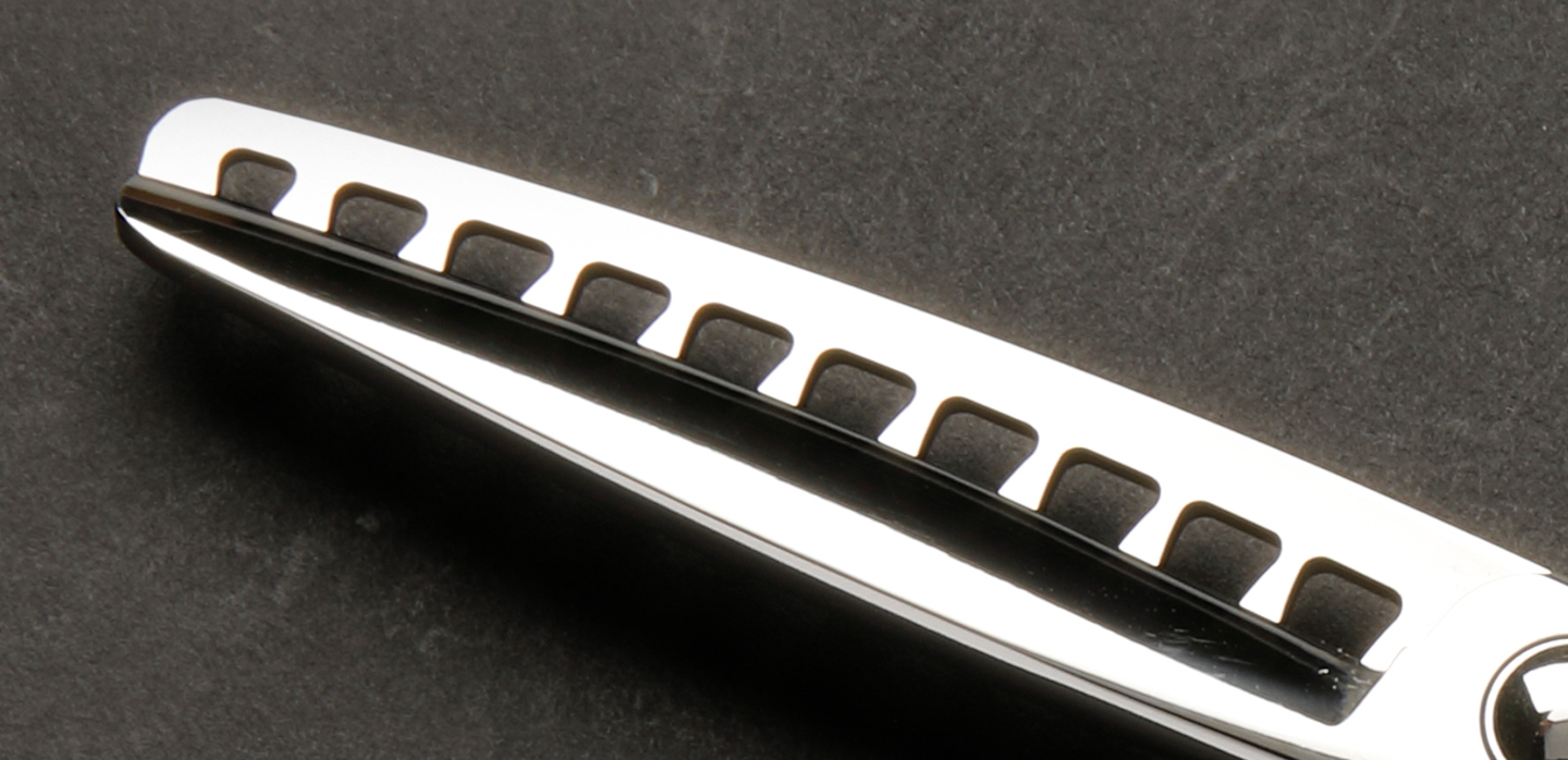 良い素材の組み合わせ技術と吸い付くように手に馴染む伝統のハンドル、スムーズで耐摩耗性に優れたベアリング内蔵極薄ラチェットネジを採用する事で今までにない素晴らしい独自の切れ味を実現します。